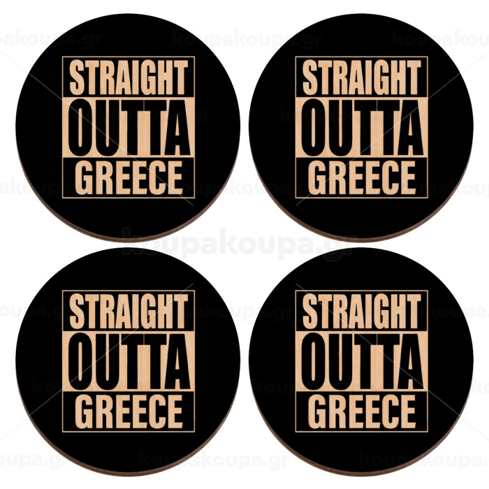 Straight Outta greece, ΣΕΤ x4 Σουβέρ ξύλινα στρογγυλά plywood (9cm)