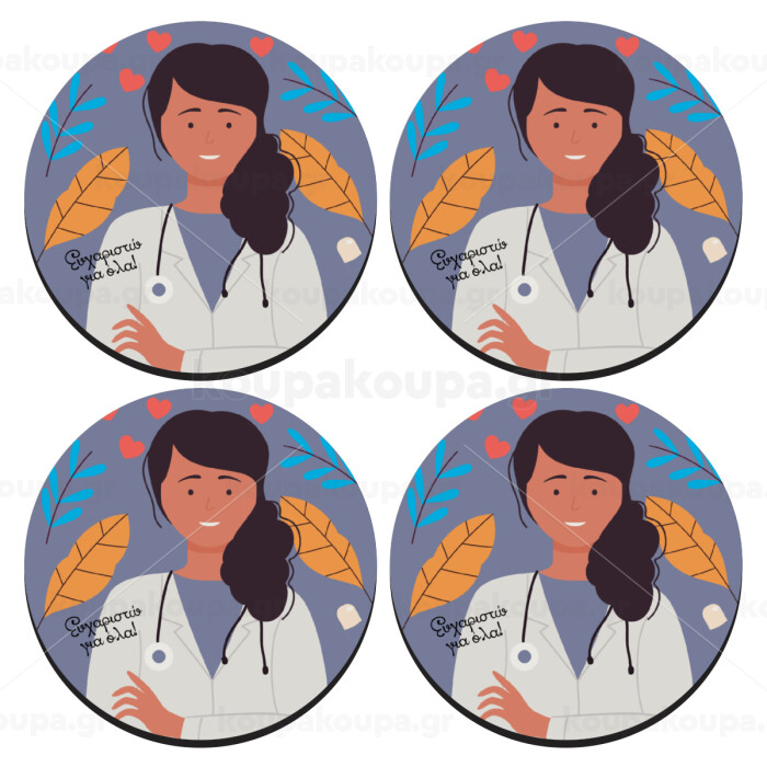 Doctor Thanks You, SET of 4 round wooden coasters (9cm)