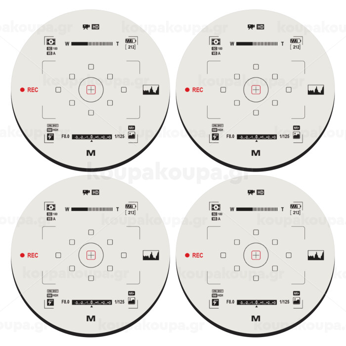 Camera viewfinder, SET of 4 round wooden coasters (9cm)