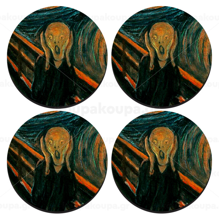 The Scream, SET of 4 round wooden coasters (9cm)