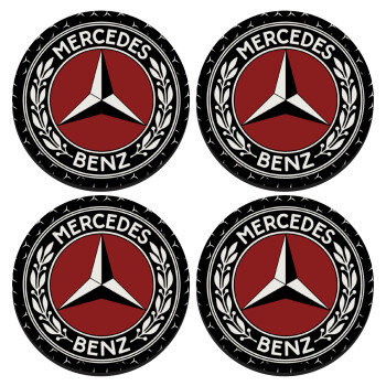 Mercedes vintage, SET of 4 round wooden coasters (9cm)