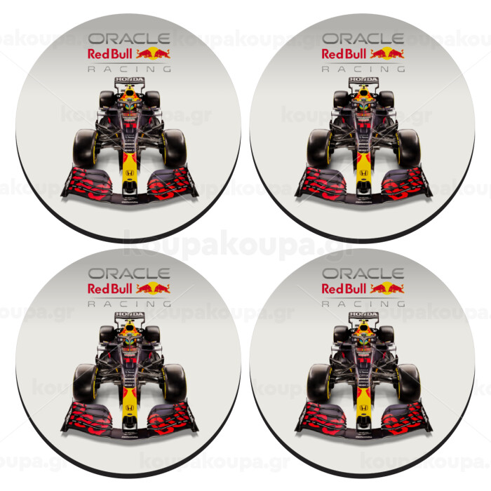 Redbull Racing Team F1, SET of 4 round wooden coasters (9cm)