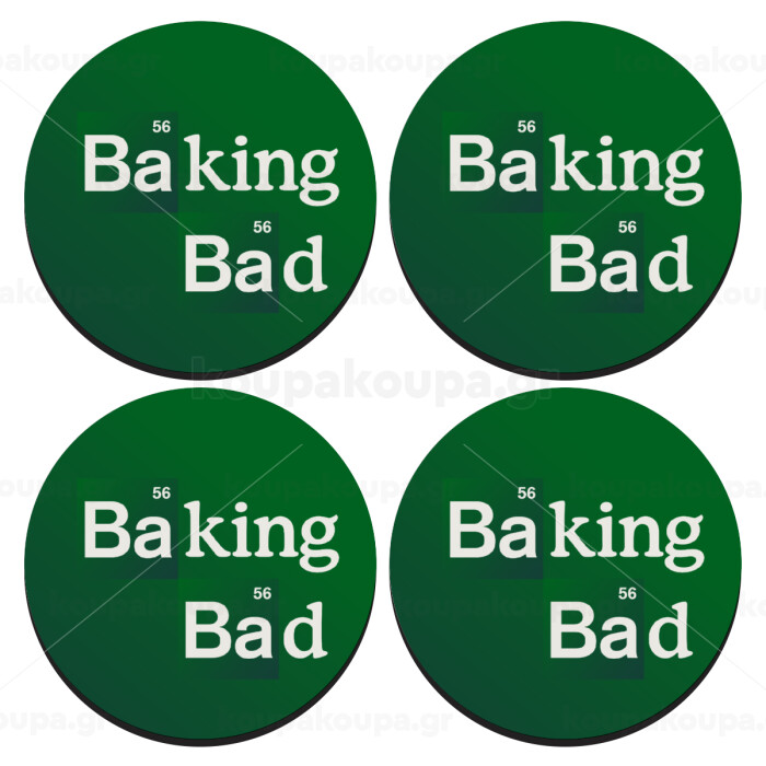 Baking Bad, SET of 4 round wooden coasters (9cm)