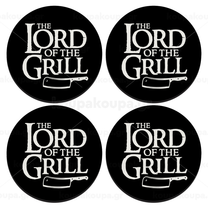 The Lord of the Grill, SET of 4 round wooden coasters (9cm)