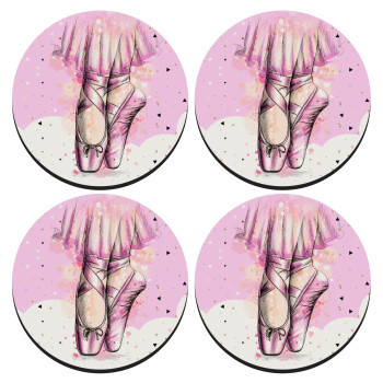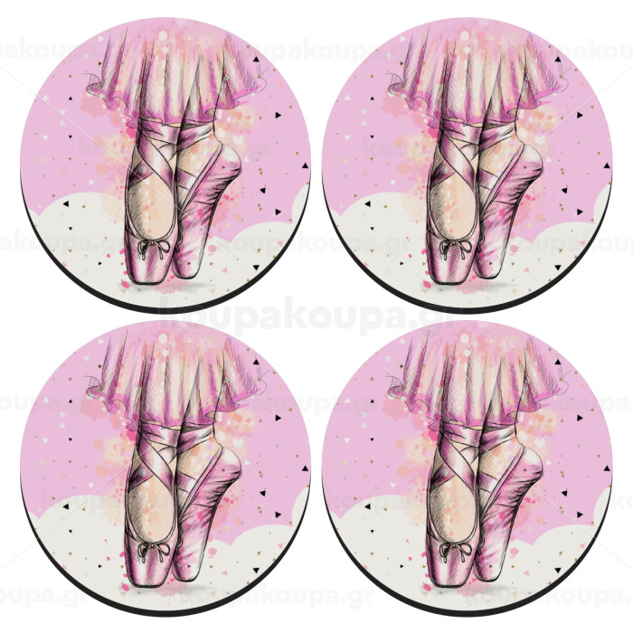 Ballerina shoes, SET of 4 round wooden coasters (9cm)