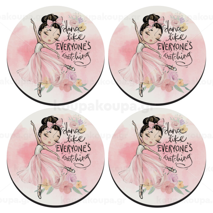 Dance Like everyone's watching, SET of 4 round wooden coasters (9cm)