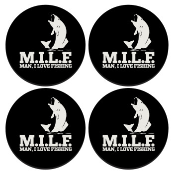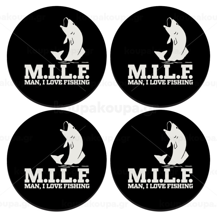 M.I.L.F. Mam i love fishing, SET of 4 round wooden coasters (9cm)