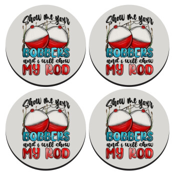 Show me your bobbers and i will show my rod , SET of 4 round wooden coasters (9cm)