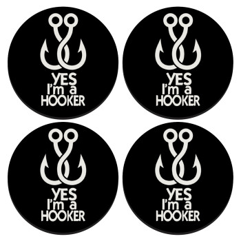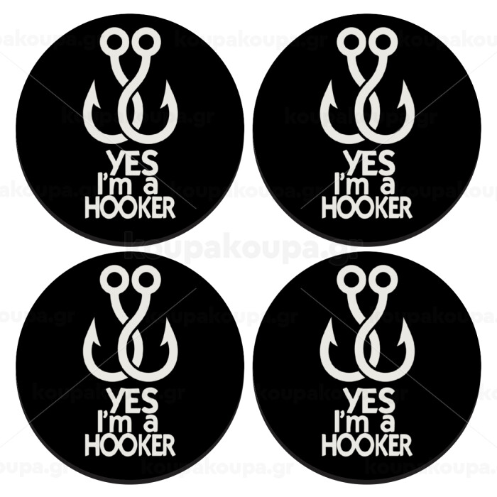 Yes i am Hooker, SET of 4 round wooden coasters (9cm)