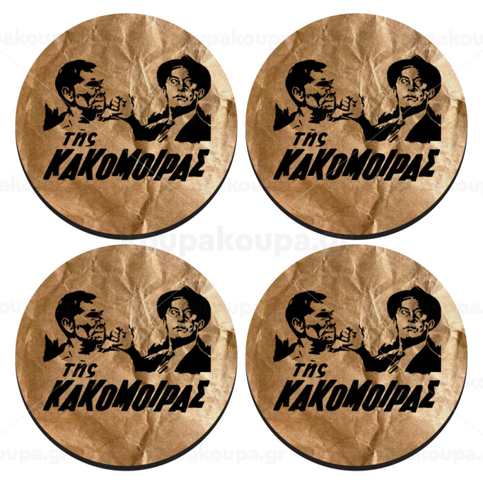 Tis kakomoiras, SET of 4 round wooden coasters (9cm)