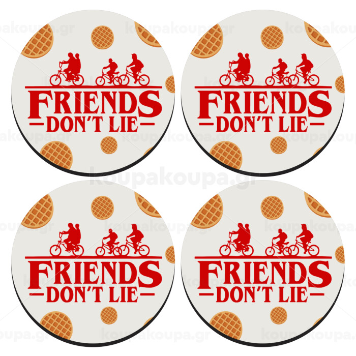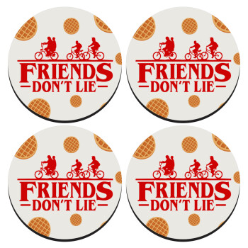 Friends Don't Lie, Stranger Things, SET of 4 round wooden coasters (9cm)