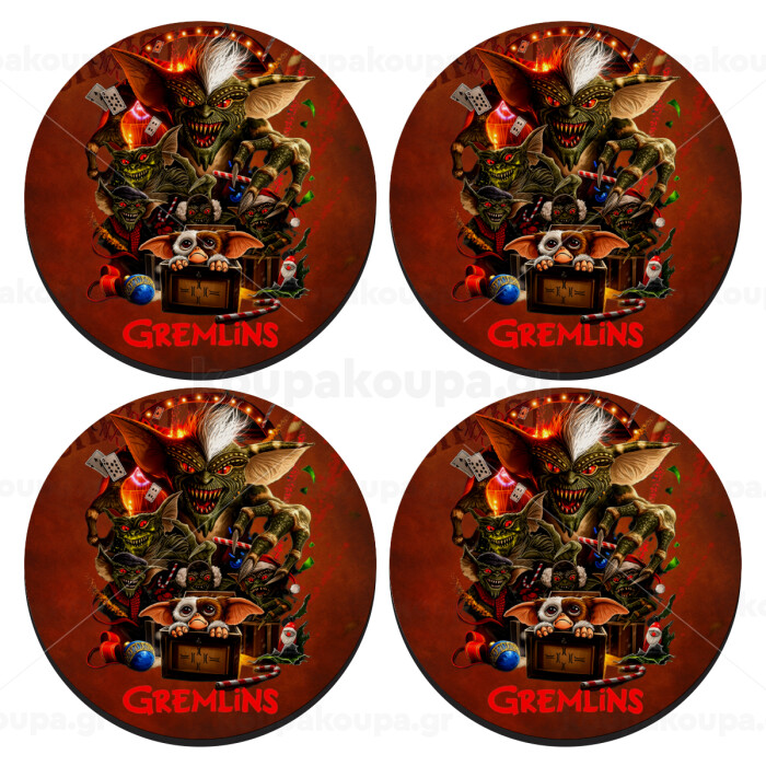 Gremlins, SET of 4 round wooden coasters (9cm)