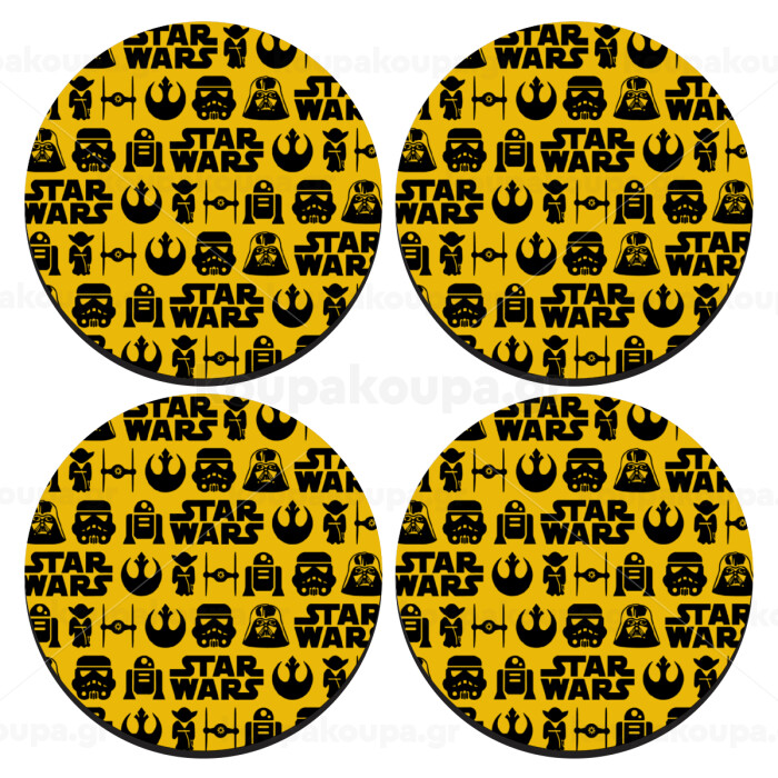 Star Wars Pattern, SET of 4 round wooden coasters (9cm)