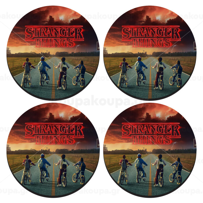 Stranger Things city, SET of 4 round wooden coasters (9cm)