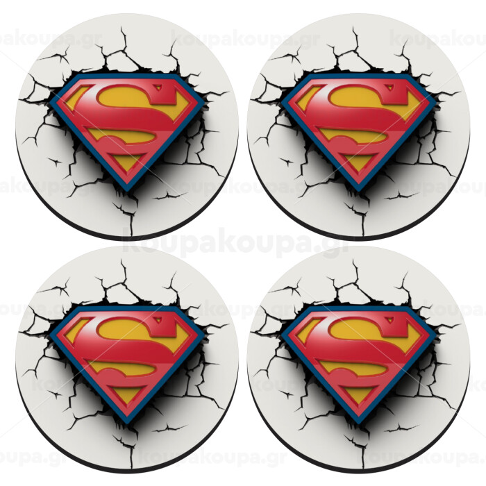 Superman cracked, SET of 4 round wooden coasters (9cm)
