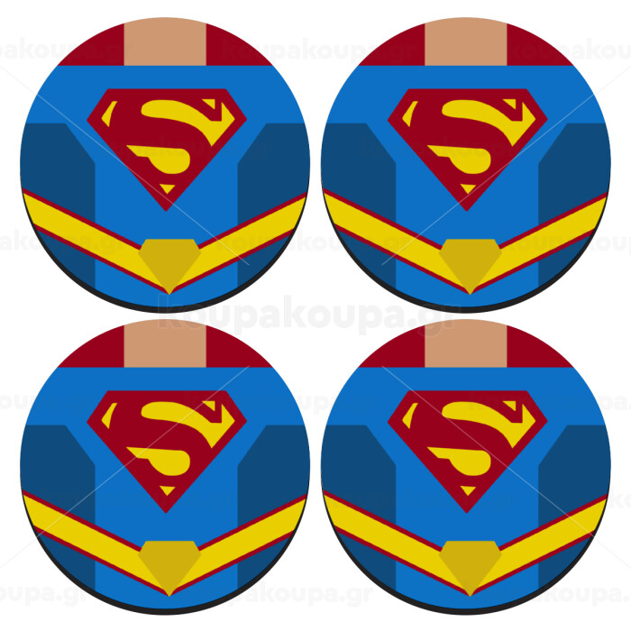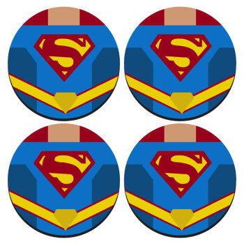 Superman flat, SET of 4 round wooden coasters (9cm)