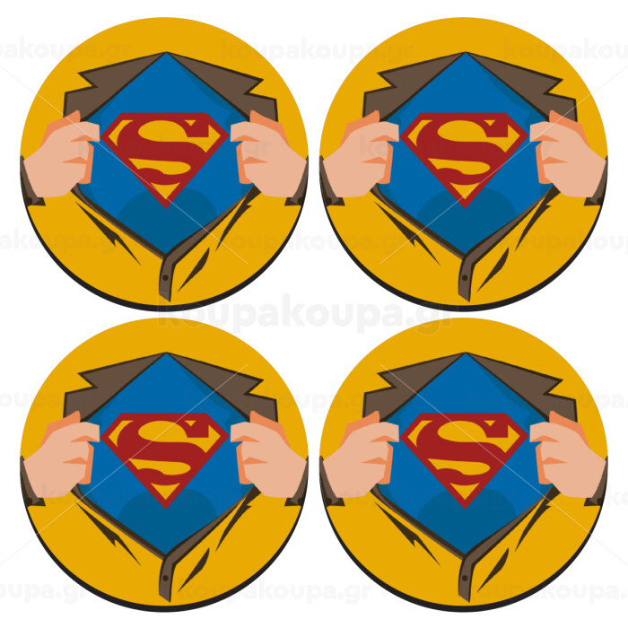 Superman hands, SET of 4 round wooden coasters (9cm)