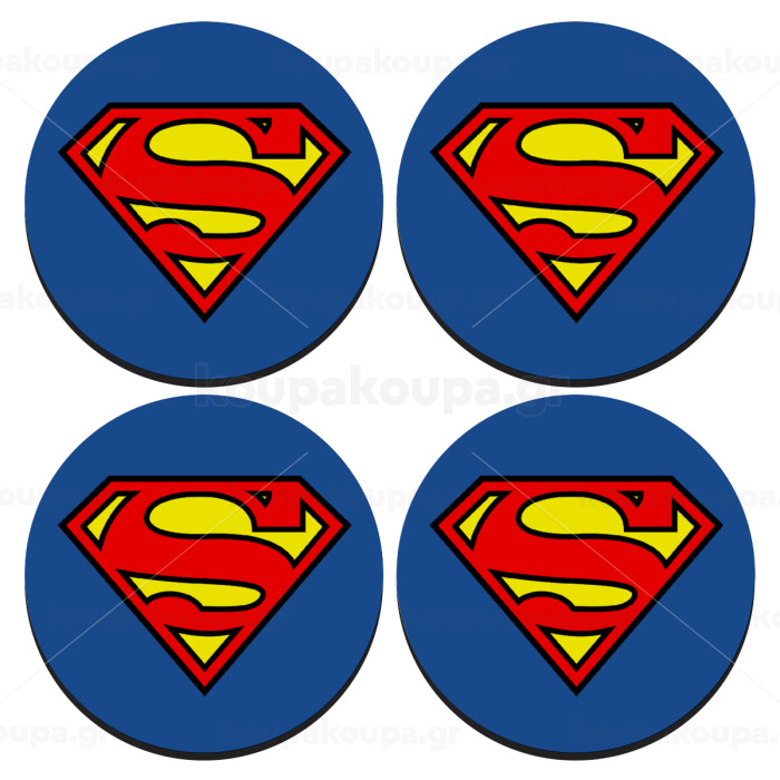 Superman vintage, SET of 4 round wooden coasters (9cm)