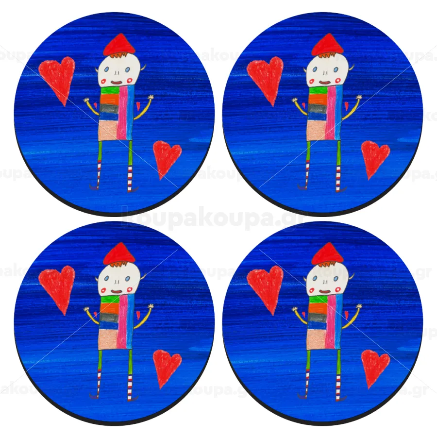 Ο Αλέξανδρος ζωγραφίζει την Αγάπη, SET of 4 round wooden coasters (9cm)