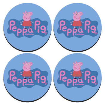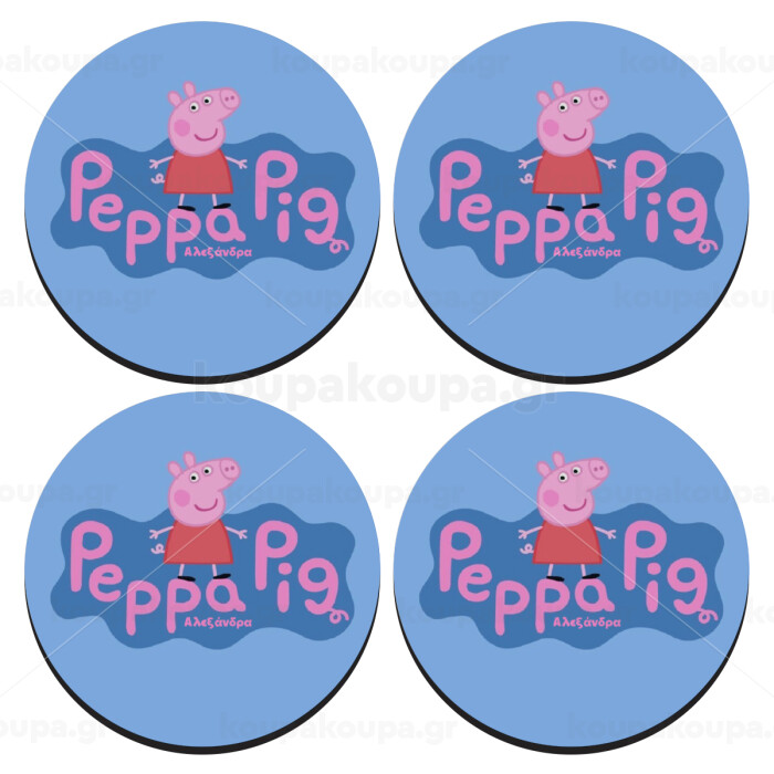 Πέππα το γουρουνάκι μπλε με όνομα, SET of 4 round wooden coasters (9cm)