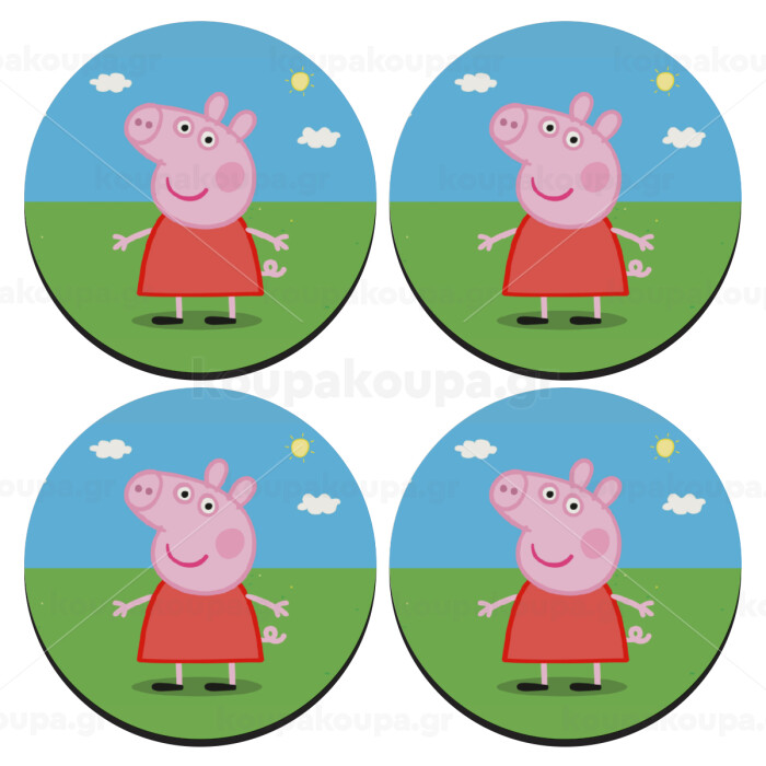 Πέππα το γουρουνάκι, SET of 4 round wooden coasters (9cm)