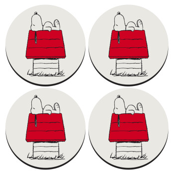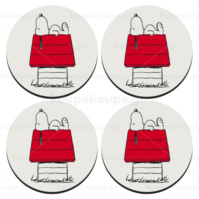 Το σπίτι του snoopy, SET of 4 round wooden coasters (9cm)