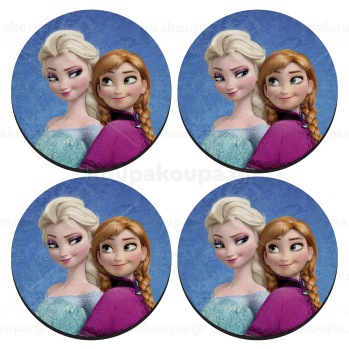 Ψυχρά κι ανάποδα Έλσα και Άννα, SET of 4 round wooden coasters (9cm)