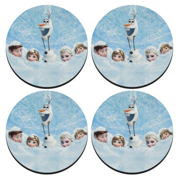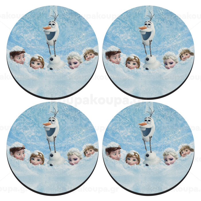 Ψυχρά κι ανάποδα Όλαφ και οι φίλοι του, SET of 4 round wooden coasters (9cm)