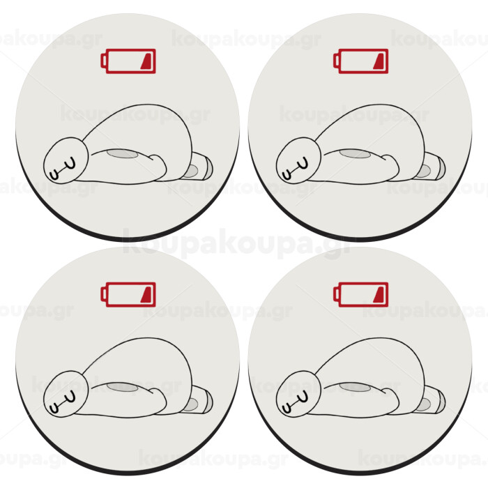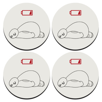 Baymax battery low, SET of 4 round wooden coasters (9cm)