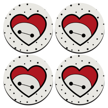 Baymax heart, SET of 4 round wooden coasters (9cm)