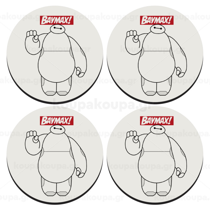 Baymax hi, SET of 4 round wooden coasters (9cm)