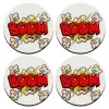 BOOM!!!, SET of 4 round wooden coasters (9cm)