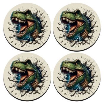 Dinosaur break wall, SET of 4 round wooden coasters (9cm)