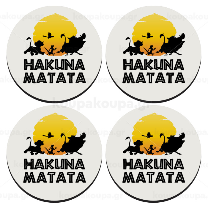 Hakuna Matata, SET of 4 round wooden coasters (9cm)