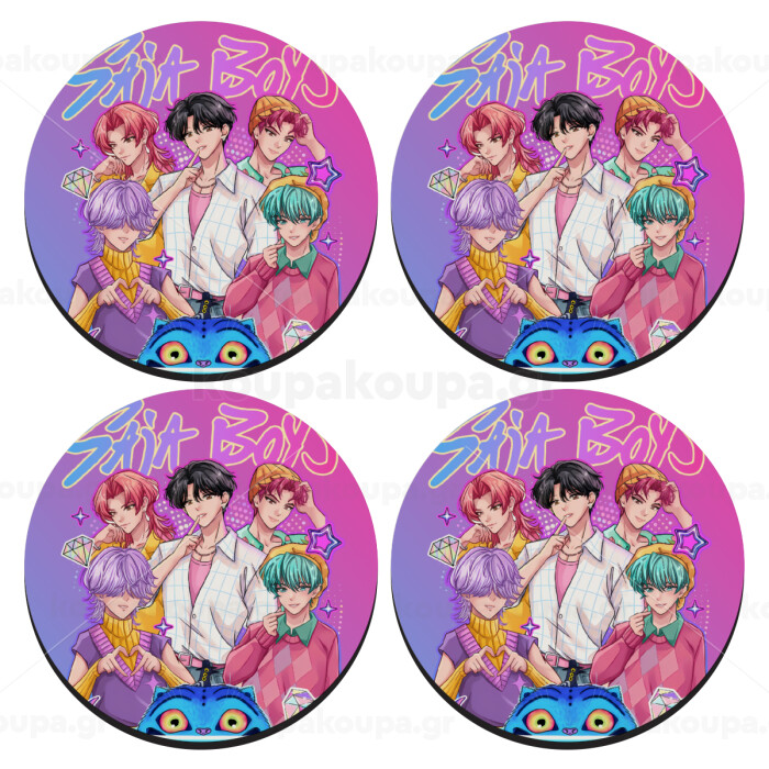 Huntrix Saja Boys, SET of 4 round wooden coasters (9cm)