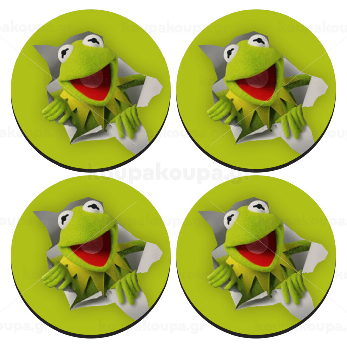 Kermit the frog, SET of 4 round wooden coasters (9cm)