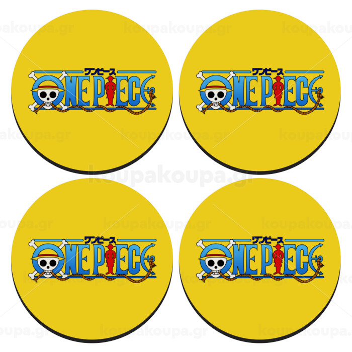Onepiece logo, SET of 4 round wooden coasters (9cm)