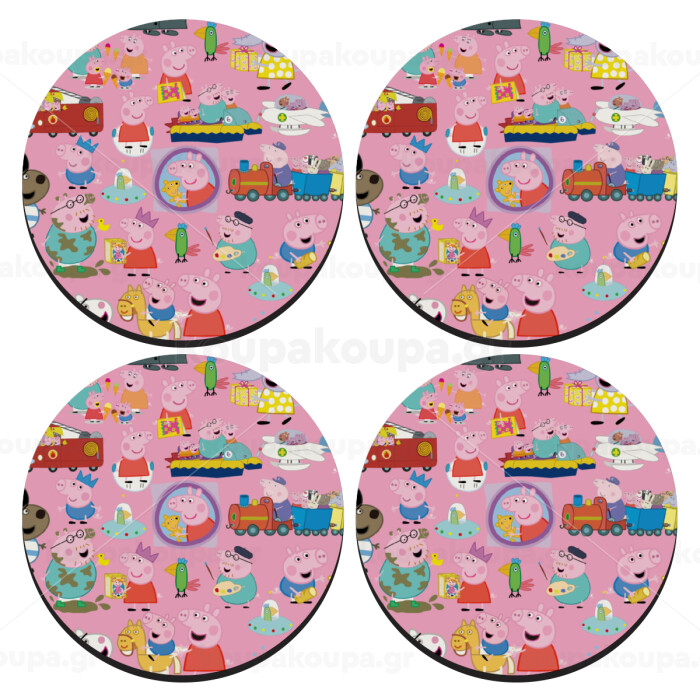 Peppa pig Characters, SET of 4 round wooden coasters (9cm)