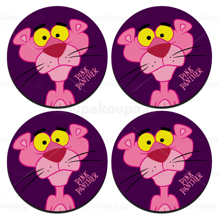 Pink Panther cartoon, SET of 4 round wooden coasters (9cm)