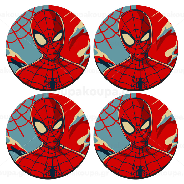 Spiderman kid, SET of 4 round wooden coasters (9cm)