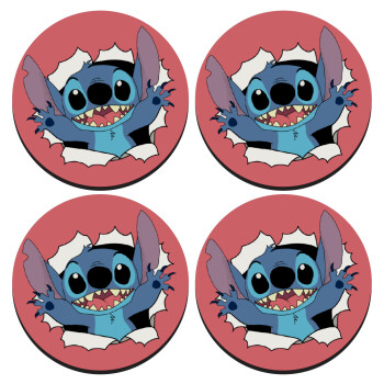 Stitch hello!!!, SET of 4 round wooden coasters (9cm)