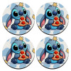 Stitch Pizza, SET of 4 round wooden coasters (9cm)