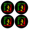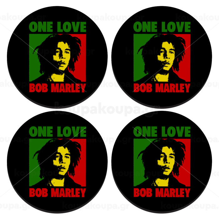 Bob marley, one love, SET of 4 round wooden coasters (9cm)