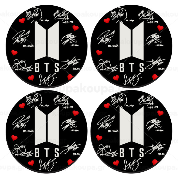 BTS signs, SET of 4 round wooden coasters (9cm)