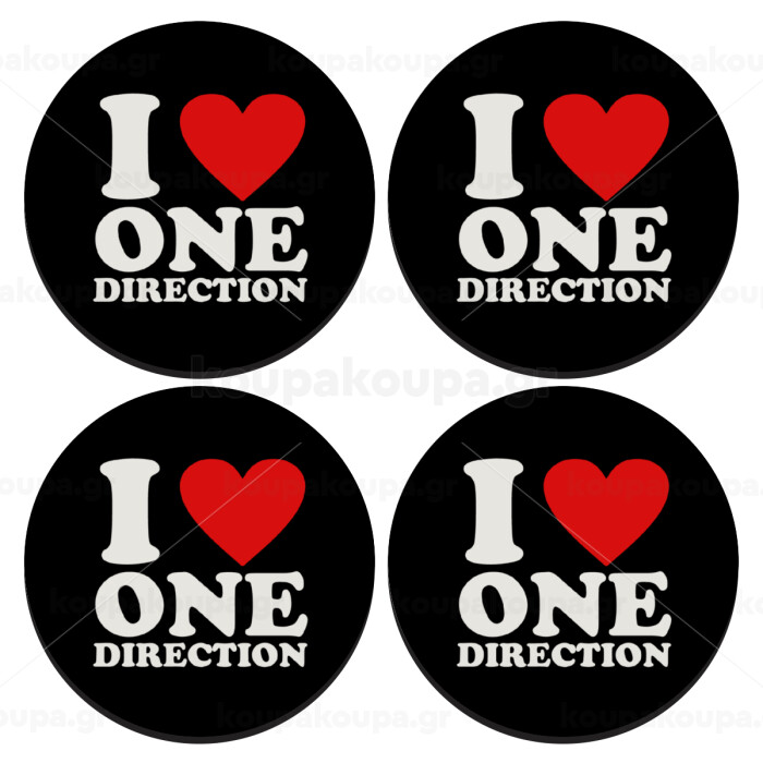 I Love, One Direction, SET of 4 round wooden coasters (9cm)