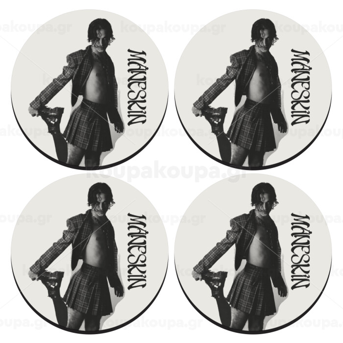 Maneskin Damiano David, SET of 4 round wooden coasters (9cm)