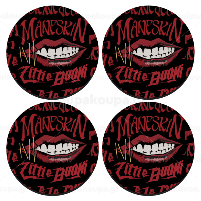 Maneskin lips, SET of 4 round wooden coasters (9cm)