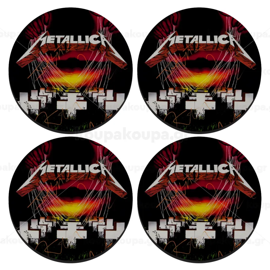 Metallica master of puppets, SET of 4 round wooden coasters (9cm)