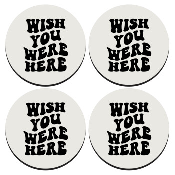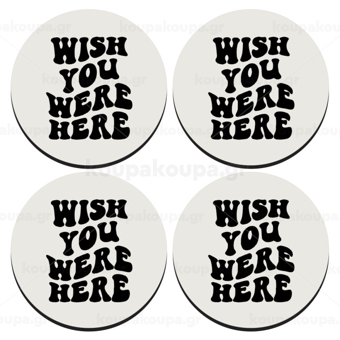 Wish you were here, SET of 4 round wooden coasters (9cm)