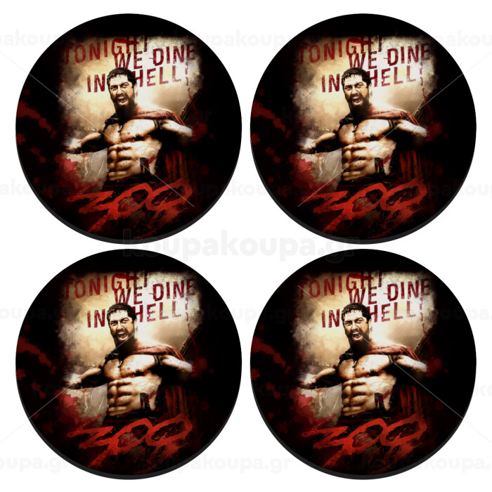 300 Tonight we dine in hell!, SET of 4 round wooden coasters (9cm)